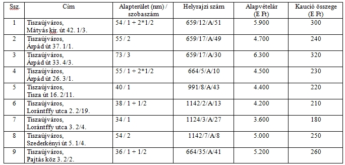 A Tiszaújváros Polgármesteri Hivatala értékesítésre meghirdeti az önkormányzat tulajdonában lévő alábbi tehermentes, üres lakásingatlanokat.
